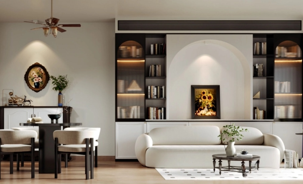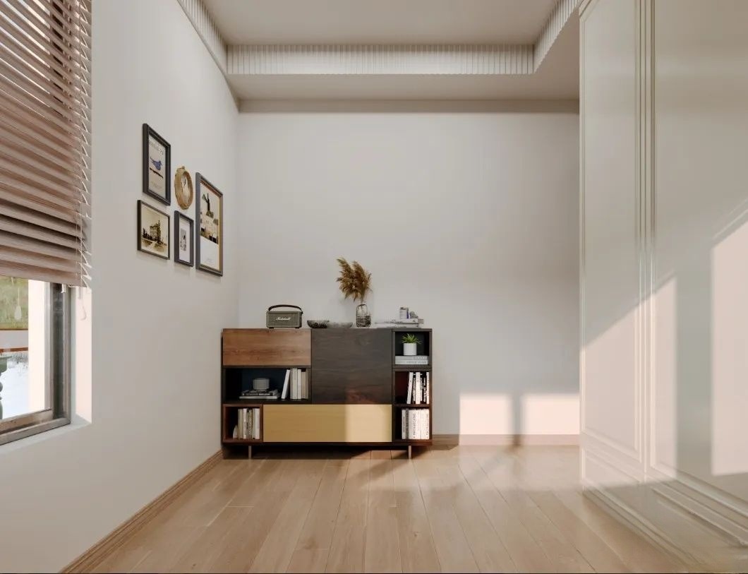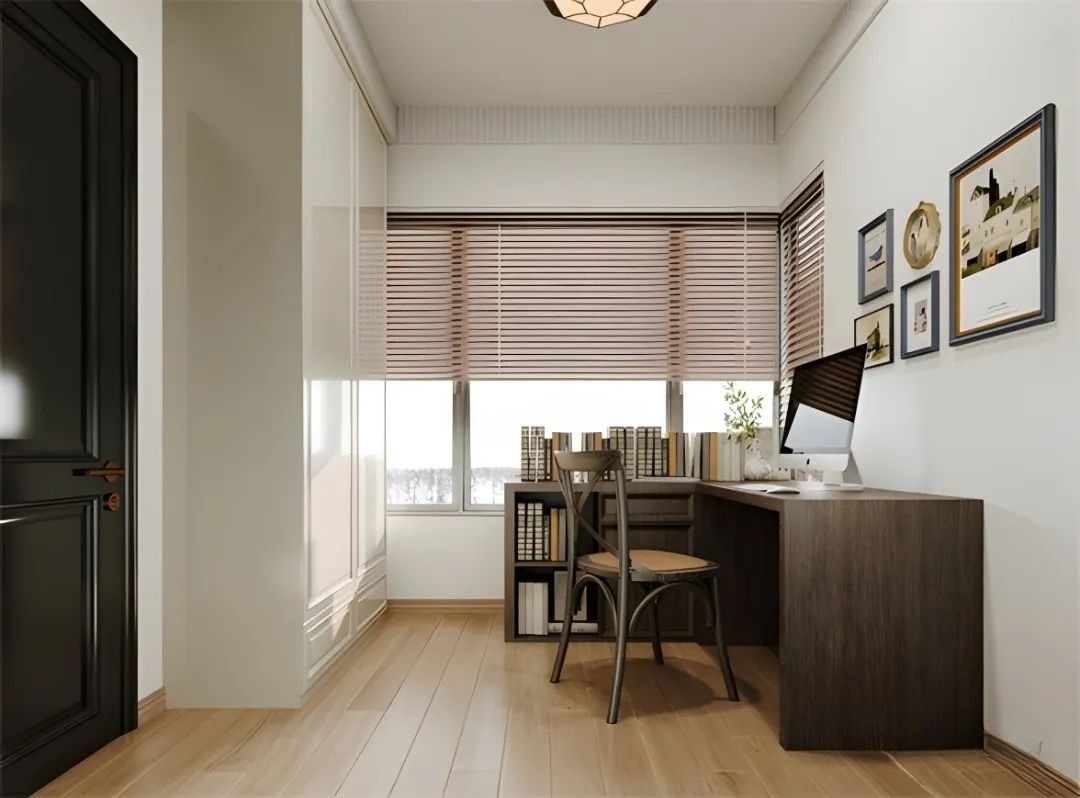 書房是特別能展現(xiàn)屋主人生活品味的空間,厚重有韻味的書臺、復古的燈盞、簡約的掛畫還有透過斜窗漫射入室的陽光,仿佛回到了風華正茂的民國時期。