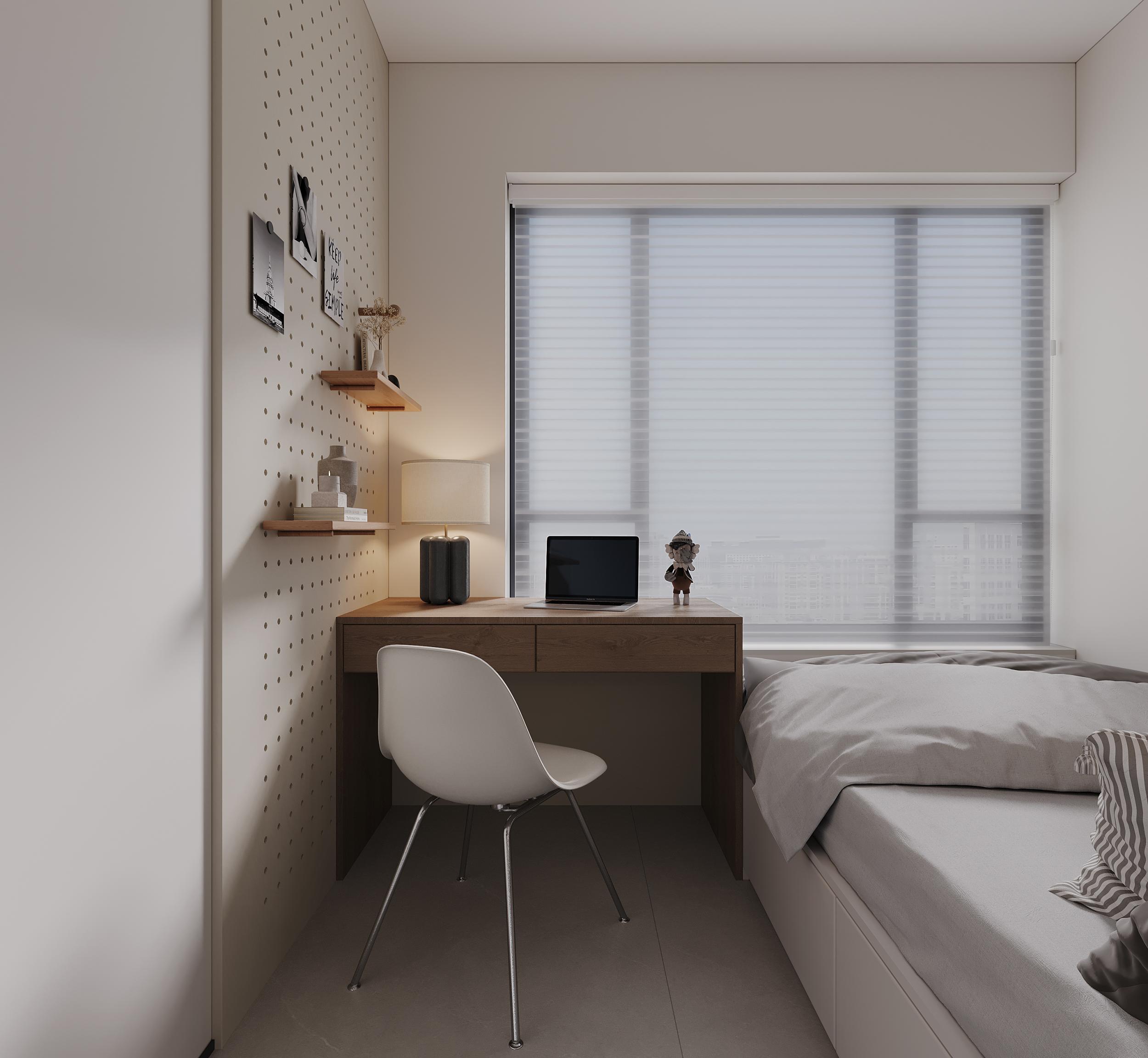 人體工學(xué)椅,木飾面、高端定制柜,平衡自然質(zhì)感與現(xiàn)代精致感。