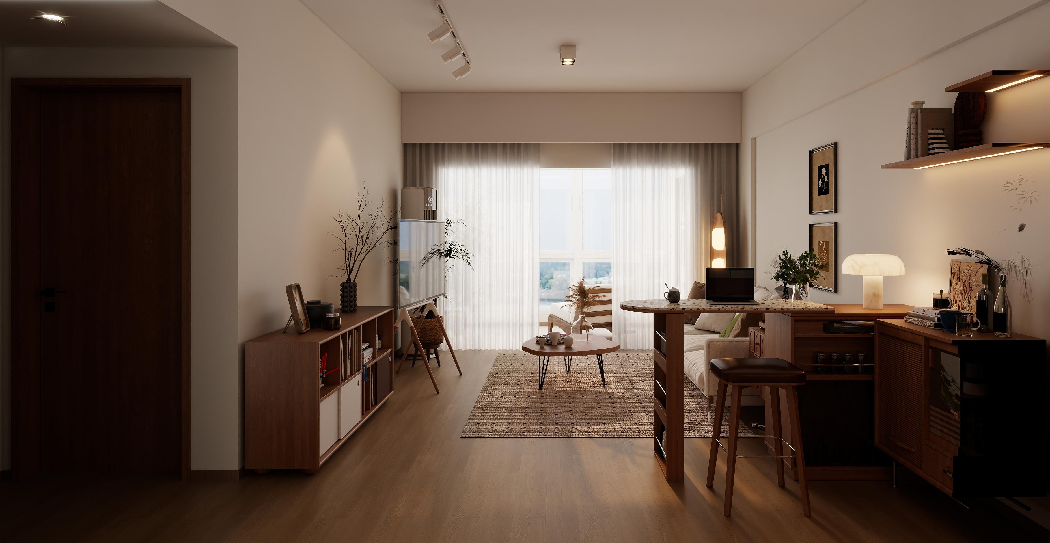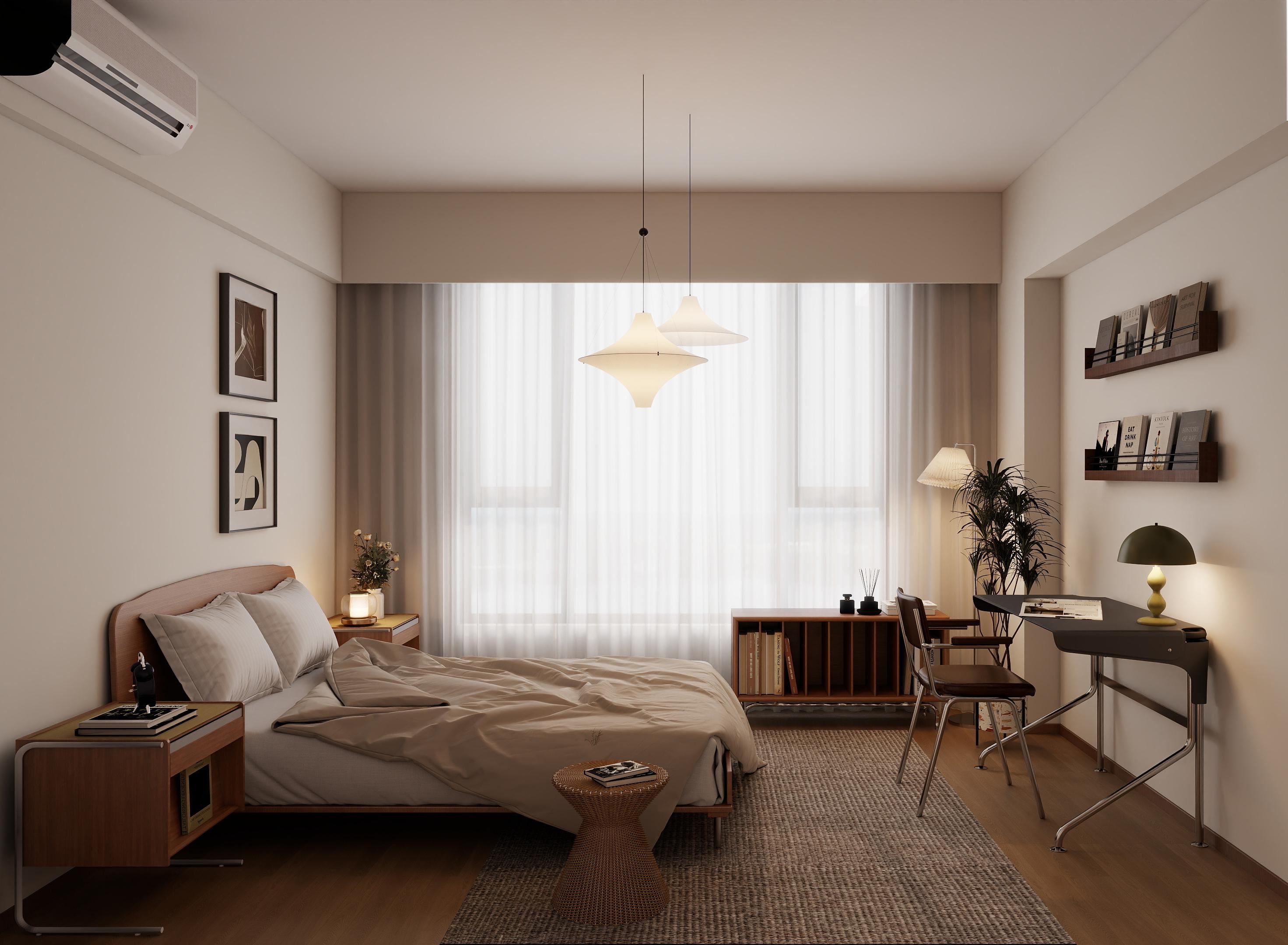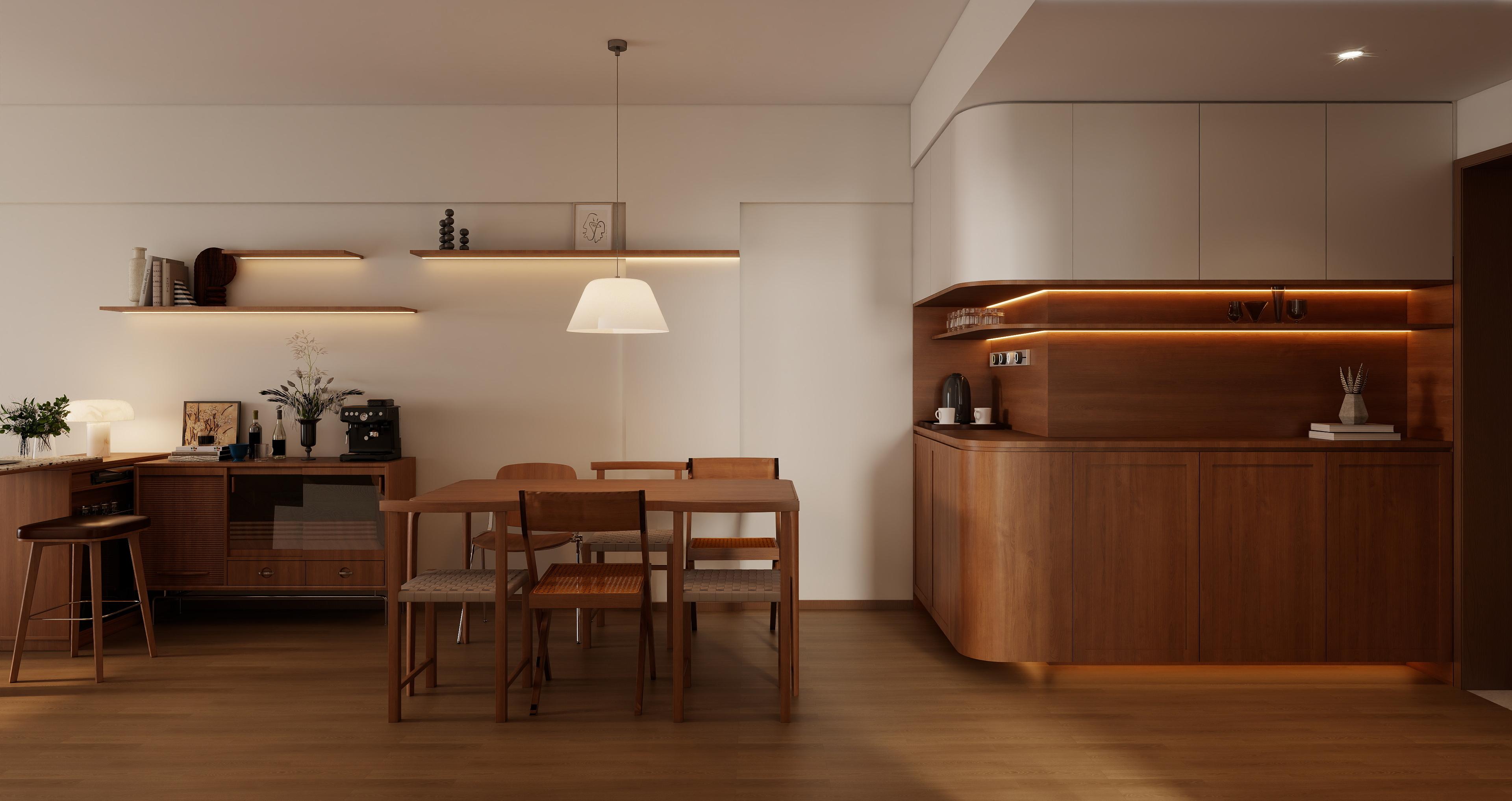 整體以溫潤木色和奶油白為主基調(diào),搭配胡桃木家具、圓弧造型和復(fù)古燈具,營造出一種克制而不單調(diào)、懷舊但不沉重的氛圍。硬裝設(shè)計盡可能簡潔,將視覺重心交給軟裝細節(jié)和空間比例,使家的層次感和舒適度同步提升。