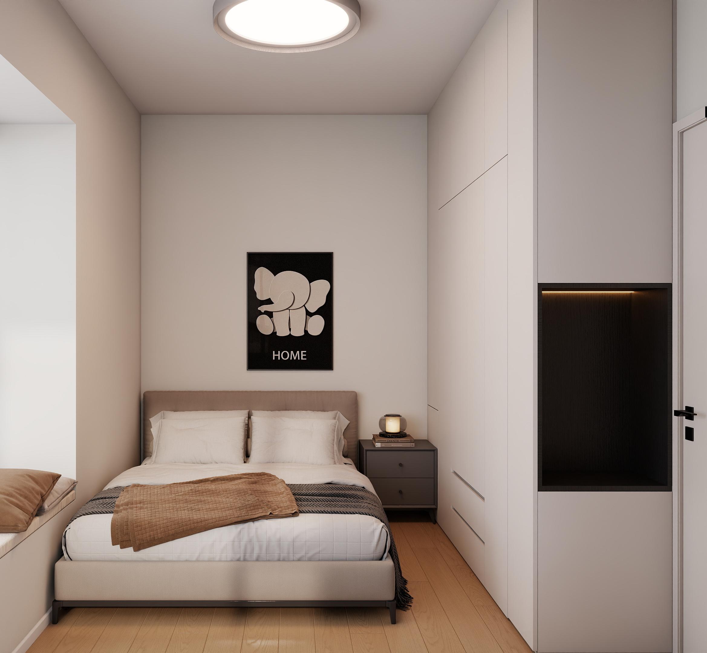 次臥:在裝修風格選擇上,次臥風格與整體家居風格相契合,同時兼顧使用者的個人喜好?,F(xiàn)代簡約風格以簡潔線條、淺淡色調(diào)與實用家具,打造出清爽舒適的空間。巧用亮色主調(diào)能極大提升室內(nèi)亮度,讓空間視覺上更顯開闊。像淺色系的墻面漆、明亮的窗簾,搭配光線柔和的燈具,可營造出溫馨且敞亮的氛圍。