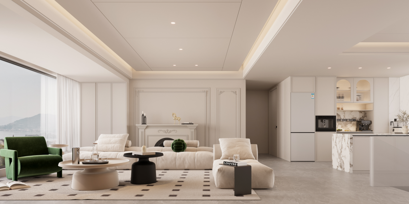 客廳:電視墻的定制柜兼具展示與收納功能,內(nèi)嵌的開放式擱架可以擺放裝飾品或常用物品,增加了空間的層次感和實(shí)用性。