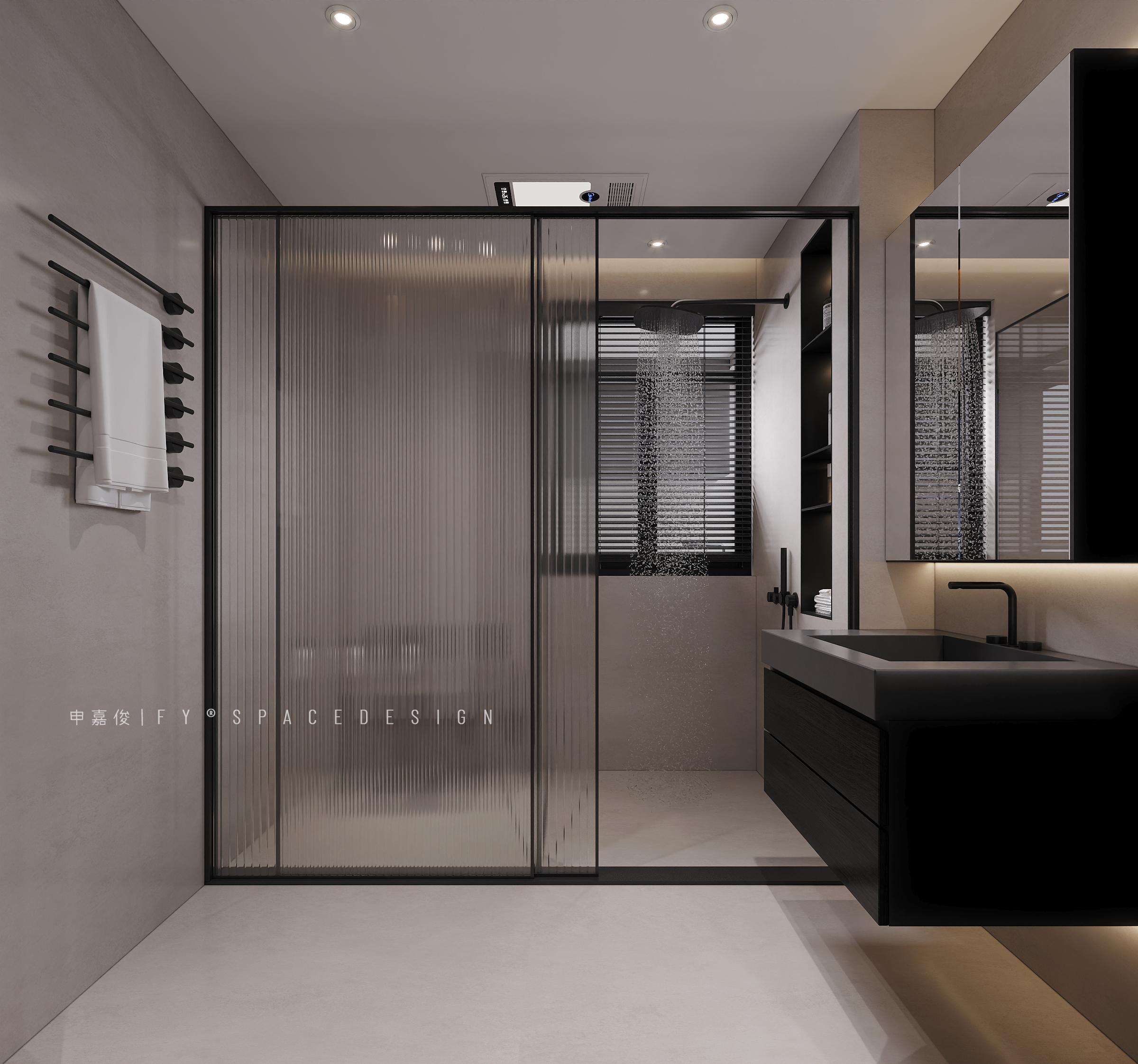 干濕分離:采用了玻璃隔斷進(jìn)行干濕分離,有效防止水花四濺,保持衛(wèi)生間的干燥和整潔。材質(zhì)選擇:墻面和地面選用了灰色的瓷磚,簡潔大方且易于清潔。黑色的衛(wèi)浴潔具和五金配件,增添了一份時尚感和質(zhì)感。收納設(shè)計(jì):浴室柜提供了充足的收納空間,可以存放洗漱用品和毛巾等物品,使衛(wèi)生間更加整潔有序