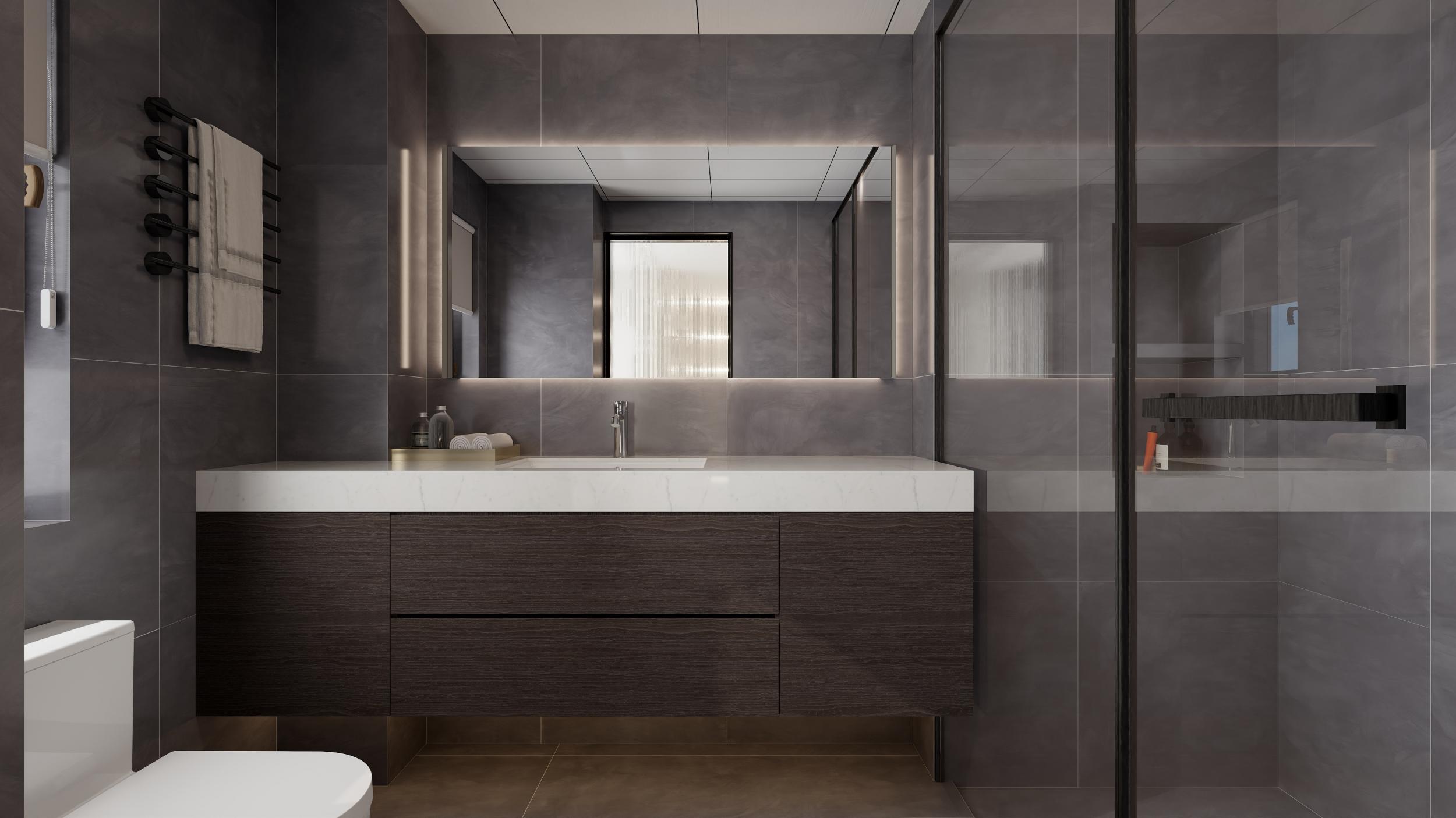 洗漱間整體深色系的運用不僅讓洗漱間顯得更加沉穩(wěn)大氣,還能有效地營造出一種私密而寧靜的氛圍。