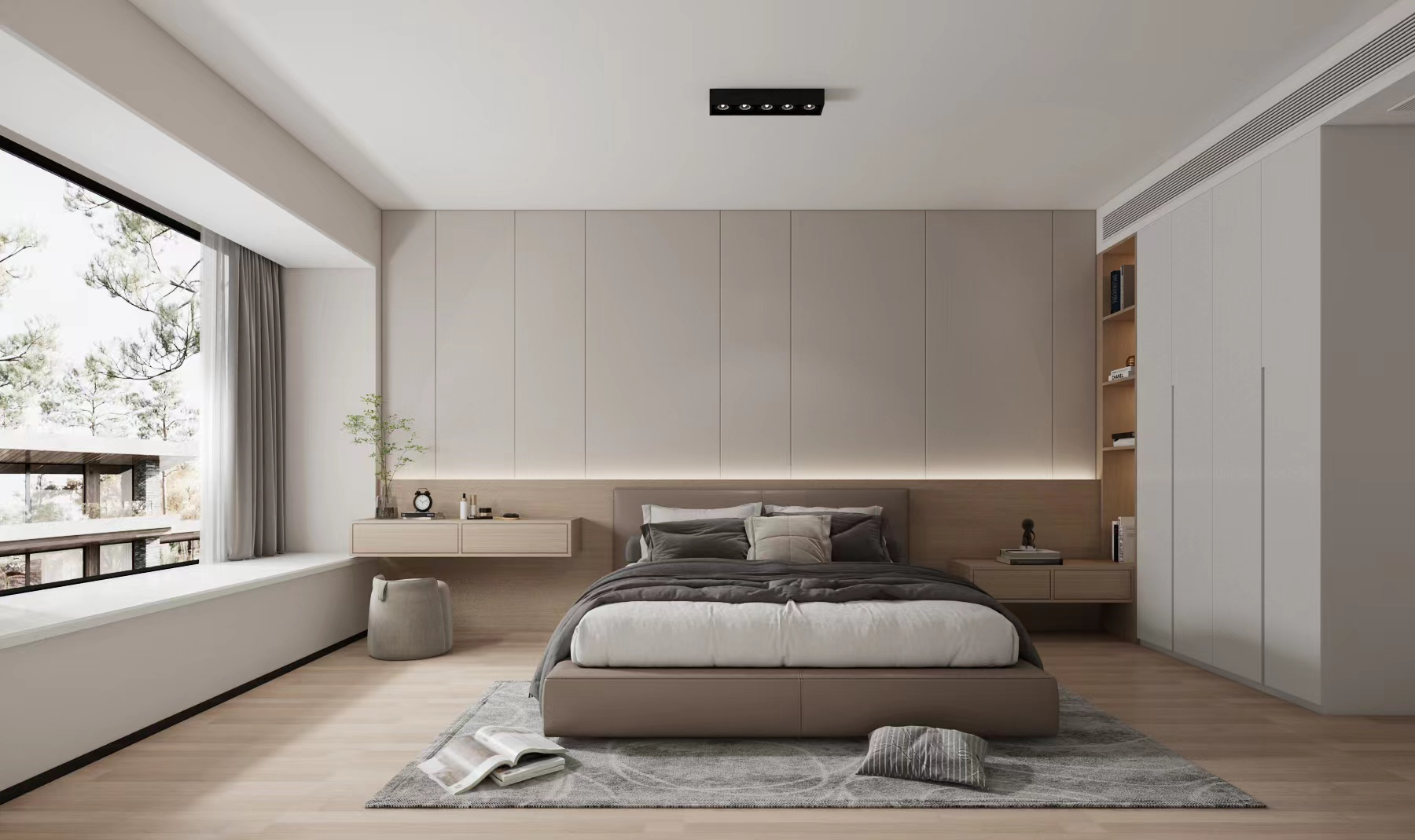?? 主人房 Master room | 在臥室的設(shè)計(jì)中,使用奶油的中灰色作為主色,搭配木色,原始、內(nèi)斂、沉穩(wěn),