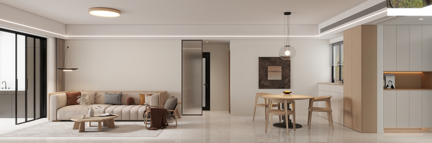 餐客廳中,空間設(shè)計(jì)得寬敞而通透。墻面和天花板采用簡(jiǎn)潔的線條和純色涂料,營(yíng)造出一種明亮、輕松的氛圍。家具方面,選擇簡(jiǎn)約造型的餐桌、餐椅和沙發(fā),以及具有現(xiàn)代感的茶幾。