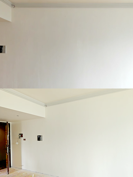 進(jìn)行正常油漆施工步驟。工序?yàn)槿文佔(zhàn)樱淮未?磨,一次底漆。兩次面漆。