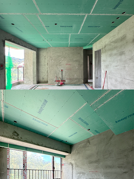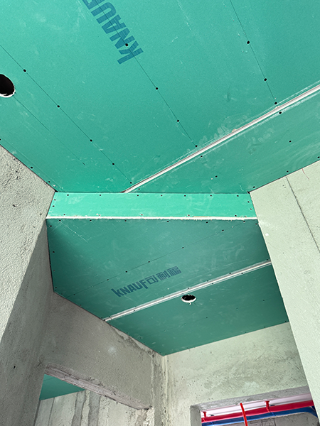 避免直釘退縫造成石膏板松動(dòng)。必須使用石膏板 螺絲固定,且不損傷紙面,石膏板大面封板需錯(cuò)縫,避免通縫,若使用雙層石 膏板,上下兩層板間需錯(cuò)縫搭接,降低開裂隱患