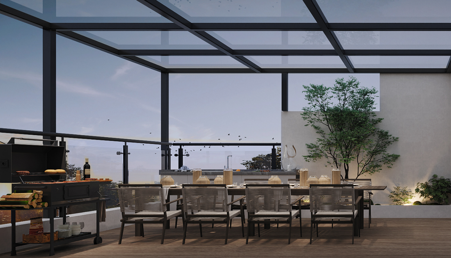 戶外庭院:以白墻為背景,宛如一幅天然的畫布。綠植與燈光巧妙結(jié)合,白天,陽光灑在綠植上,生機勃勃;夜晚,燈光亮起,映照出綠植的婀娜姿態(tài),營造出自然舒適的畫面。木色地板自然美觀,與室內(nèi)的原木色元素相呼應(yīng),使整個空間內(nèi)外相連。居住者身處其中,能夠自由地在自然與建筑之間切換,既能盡情享受現(xiàn)代簡約生活的便捷與時尚,又能深切感受到自然的清新與寧靜,真正實現(xiàn)了建筑與自然的和諧共生。