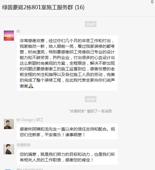 “從選材到最終交付,體驗感超棒,感謝非意裝飾!”