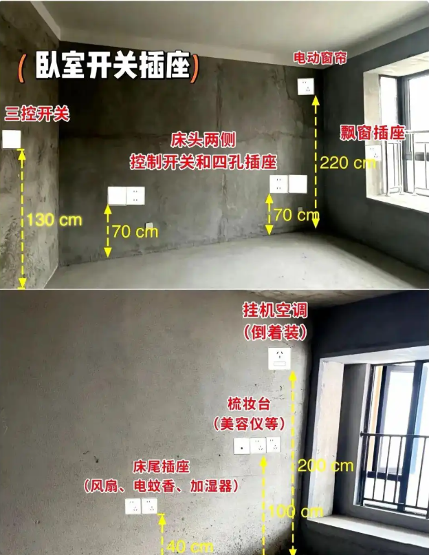 電動窗簾/飄窗插座:錯位五孔×2,離地220cm
