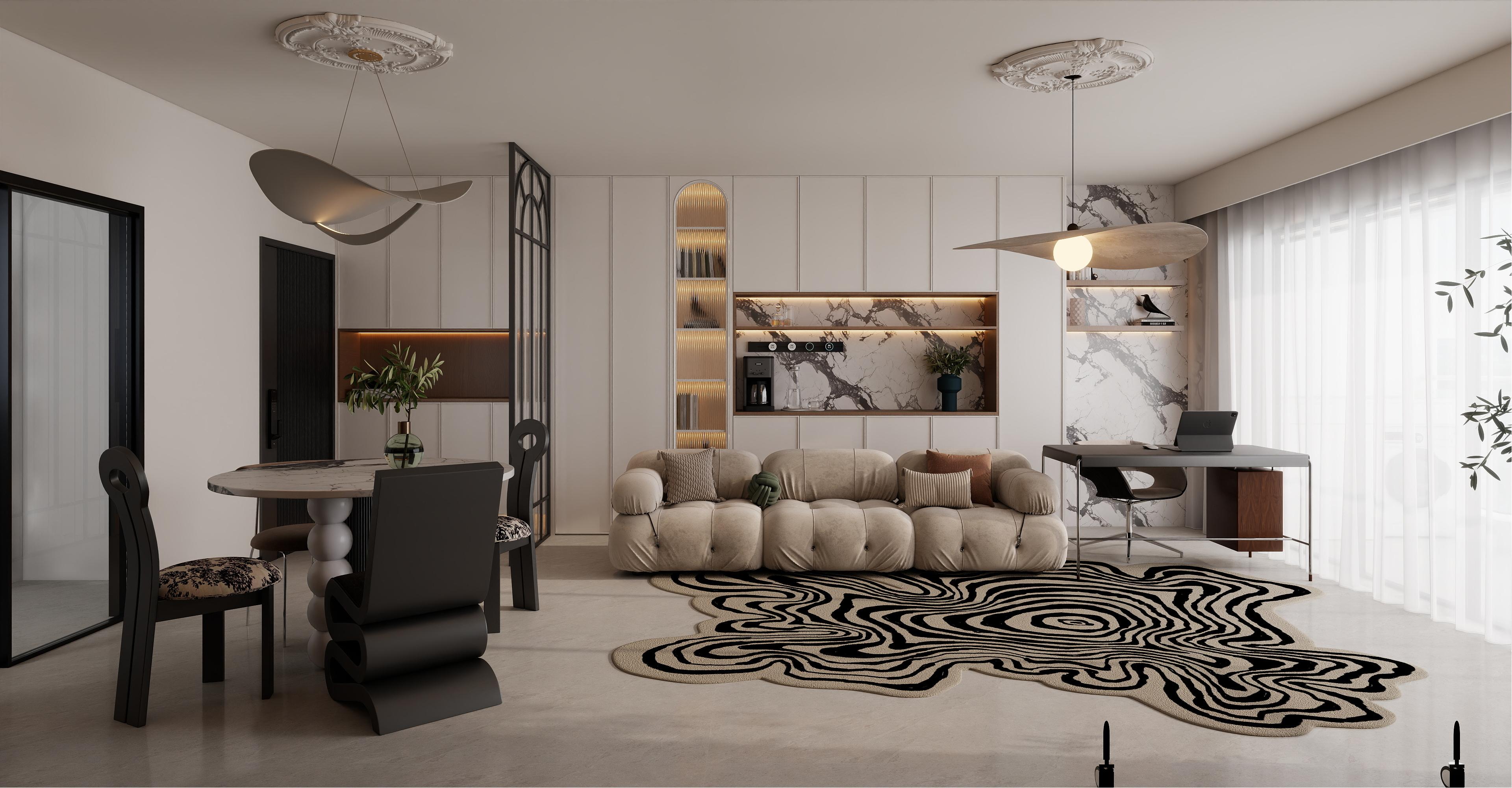 窗簾不僅可以遮光、隔音,還能起到裝飾作用。根據(jù)不同的房間功能選擇合適的窗簾,如臥室可以選擇遮光性好的窗簾,客廳可以選擇透光性好的紗簾。地毯可以增加房間的溫馨感,選擇時要注意與家具的顏色搭配。