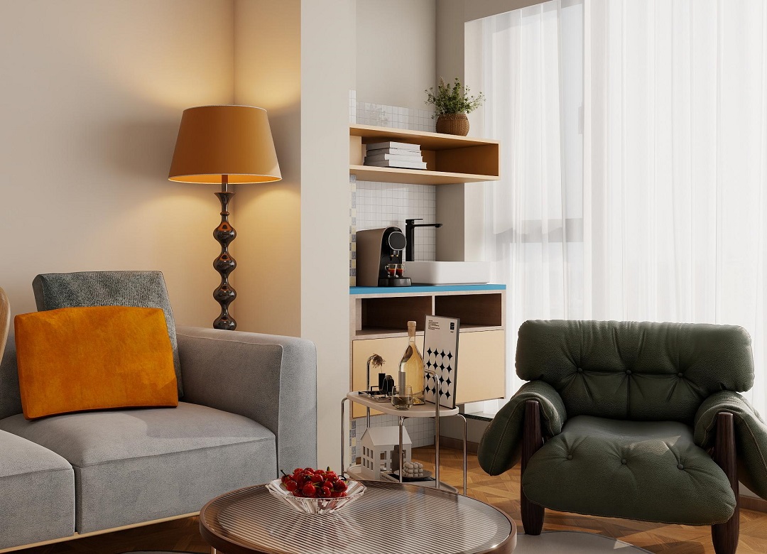 為了不影響客廳的整體使用功能,可以在隔斷附近合理布置家具。選擇小巧、多功能的沙發(fā)和茶幾,避免占用過多空間。同時,利用墻面空間安裝收納柜,增加客廳的儲物功能,使客廳保持整潔有序。