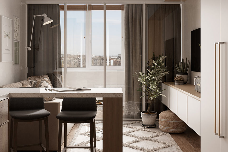 采光改善:增加窗戶數(shù)量和大小,選擇透光性好的窗簾和隔斷。